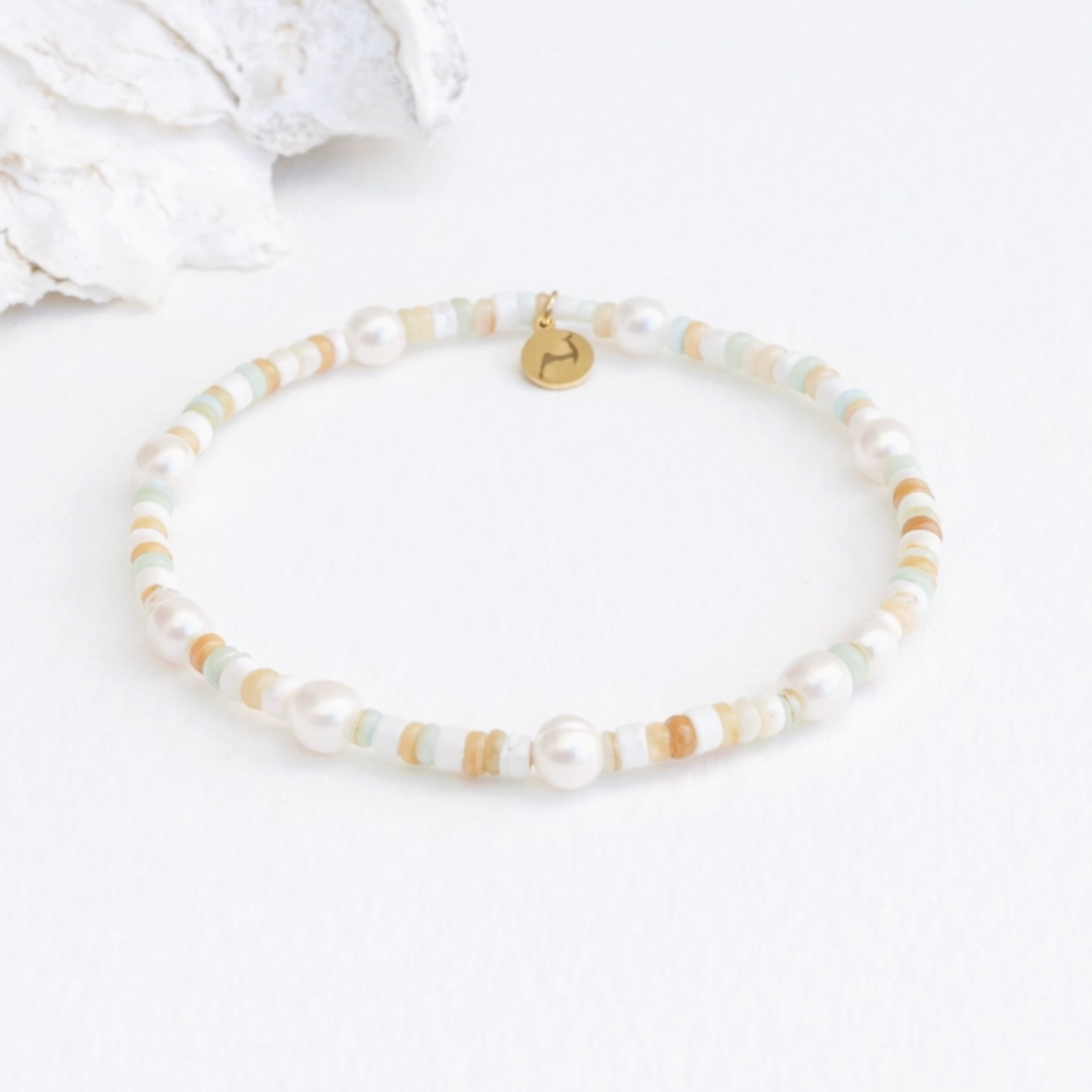 Slip into the season wearing this handmade 6.25-6.75” standard fit, stretch puka shell bracelet. Each bracelet is adorned with natural puka shells and pearls, and a signature Cape Cod Choker charm. Purchase also includes a Cape Cod Choker's sticker and card.
